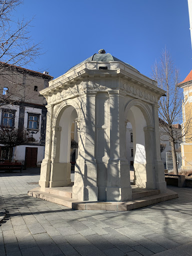 Read more1766-ban létesítette a város egy korábbi láncos kút helyén. A copf stílusú, finom arányú kútház eredetileg zárt volt, és az ablakszerű nyílásokat zsalugáterek fedték. 1818-1824 között formálták át klasszicista stílusban a nyílások kibontásával. Mai képében a kútház négy irányban ívekkel nyitott, lapos ívű csehsüveg boltozata pedig római dór pilaszterekkel díszített...