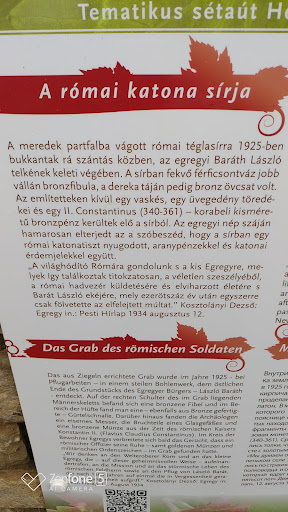 A meredek partfalba vágott római téglasírra 1925-ben bukkantak rá szántás közben, az egregyi Baráth László telkének keleti végében. A sírban fekvő férficsontváz jobb vállán bronzfibula, a dereka táján pedig bronz övcsat volt. Az említetteken kívül egy vaskés, egy üvegedény töredékei és egy II. Constantinus (340-361) korabeli kisméretű bronzpénz kerültek elő a sírból. Az egregyi nép száján hamarosan elterjedt az a szóbeszéd, hogy a sírban egy római katonatiszt nyugodott, aranypénzekkel és katonai...