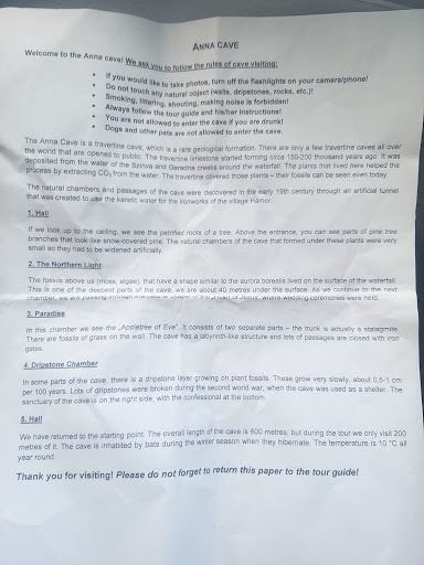 awful service, we arrived at 15:00, they told we need to wait till next excursion that starts at 16:00, we bought tickets and went to walk around. At 15:55 we came at the cave entrance (under the ticket selling counter). we were waiting for 25 minutes noone came. We went back to ticket counter they told us group went inside at 16:00, what? we were there and noone called us inside... just a mess.. and yes, excursion is only on Hungarian and you will get this sheet of paper see photo... they could also give some photo's from the inside - so no one need to go inside at all -just reed a text and see photos...