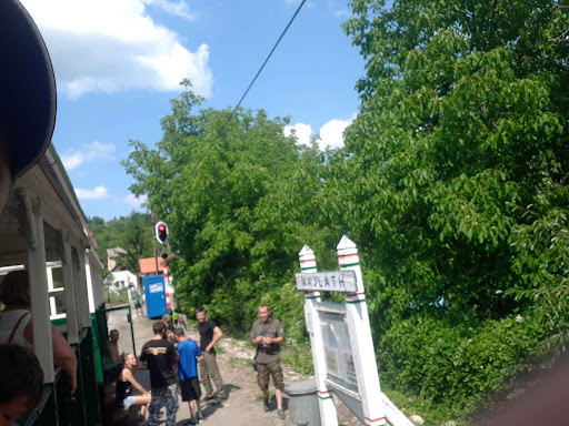 Now to the actual service. In my perspective it looks like they don't really want tourists to use the train. Departure station is virtually unfindable on the map. Lady selling tickets only speaks Hungarian. All signs are in Hungarian only. There is no map of the railway, no map of stops. Price is high. I am not surprised that the train was only half-full in high-season.