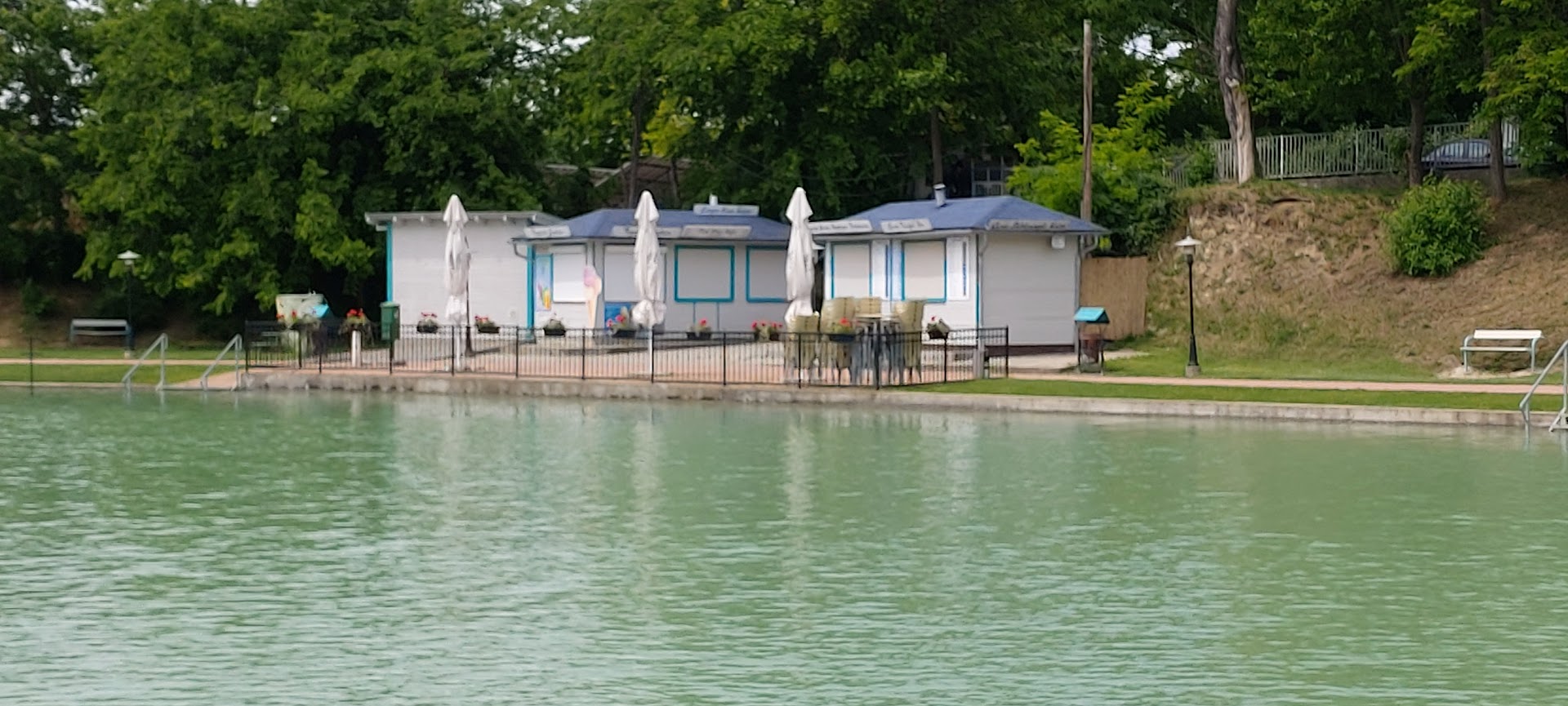 Read moreVázlatosan: • ha árnyékos helyet szeretnél, már nyitás előtt legyél ott a bejáratnál, különben csak a magaslaton a kerítés mellett találsz ( ha találsz ilyen helyet ) • a víz tiszta ( nyilván azért ne Maldív szigetek szintre számítson senki ), kb. mint a Balcsi. A tómeder kb. 150 centiméteres mélységig apró kavicsos, simán mezítláb járható, nem szúr, de amint beljebb mész, iszaposodik. Kövek, hínár, "azonosítatlan objektumok" nincsenek. Ki lett kotorva módszeresen. • gyerekeknek a bejáratnál, az első 100 méteren van kialakítva egy sekély homokos partszakasz. • büfé, koktélbár, fröccsterasz, lángosozó, giroszos, halas, fagyis stb. van és szerintem elfogadható áron. Amire emlékszem csapolt sör korsó 600-700 kb. Egy deci bor 200-400-600 attól függ hol veszed. Fröccs 500-800 között fajtától függően. A girosz 1200 pitában, girosz tál 2500 kb. Hamburger 1000 ft. kb. • öltöző, wc. kettő helyen biztosan van, egy a bejárat után, egy pedig a tópart vége fele a csúszdák környékén. Relatíve tiszták, nincs velük baj. Azért papírt érdemes vinni, mert nem mindig folyamatos az utántöltés. • parkoló, amennyire láttam elég nagy sok autó elfér. • Szép kártyával ( is ) lehet belépőt fizetni, és bent is elfogadják itt-ott a büfékben.