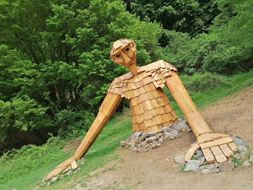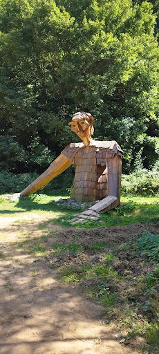 A Kőmorzsoló óriás Püspökszentlászló és Hosszúhetény között, egy békés erdőszélen talált rá új otthonára. A költözködésben Baráth Gábor képzőművész segítette, aki alapanyagot és energiát nem kímélve, sok köbméternyi akácfából alkotta meg a 3-4 méteres kolosszust. Nem csak környezetbarát, de biztonságos is, így a gyerekek nyugodtan kipróbálhatják, milyen érzés egy óriás tenyerén csücsülni.
