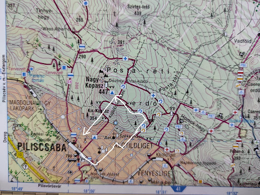 You can go to Lookout from Piliscsaba train stations, just follow the blue line (➖) hiking trail until blue cross (➕) , then turn right until find blue circular arrow, then turn righ again and follow the trail and you will find...