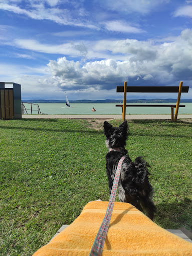 Read moreRendkívül örültünk, hogy rátaláltunk erre a helyre, gyönyörű állapotban lévő strand, ahonnan nincsenek teljesen kitiltva a kutyák sem. A strand gyalogos bejárata felől egy "Kutyát csak pórázon szabad sétáltatni!" tábla fogad, rengeteg kutyás volt is, többnyire szerencsére kulturált ebekkel. Egy kis sup és kishajó vízrebocsátó rámpán be tudtuk vinni a kutyát is a vízbe, nem hogy nem szólt érte senki, de a többi kutya is ott fürdött, az embereket sem zavarta. A víz nagyrészt hínáros, több helyen kagylótörmelék és szúrós aljnövényhez vagdosta és szúrkálta a lábunkat, azt gyanítjuk, hogy talán emiatt nem voltak annyira sokan hétvégén sem a parton. Kerékpártároló, röpipályák, homokos focipálya, pingpong asztalok, street workout eszközök és mozgatható napozóágyak is vannak, a vízben pedig kapuk és valószínűleg sup- és windsurf bérlési lehetőség is van, szuper felszerelt, rendben van minden. A Szerinted? büfét próbáltuk, finom,...