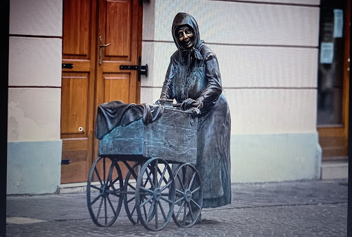The bronze statue of Aunt Kati, the infectious woman is located in the pedestrian street of Ferenc List in downtown Székesfehérvár The sculpture depicting the characteristic figure of the former Székesfehérvár market, her porticoes depicting an old woman pushing her car from the appear town district to the downtown market was inspired by Balázs Kocsis, Aunt Kati cat cat the duck and goose into four parts, they were fried in their own fat. It's a local food speciality in Székesfehérvár. She was about 93 years old, she was called : Katalin Imréné...