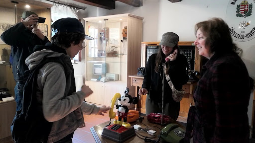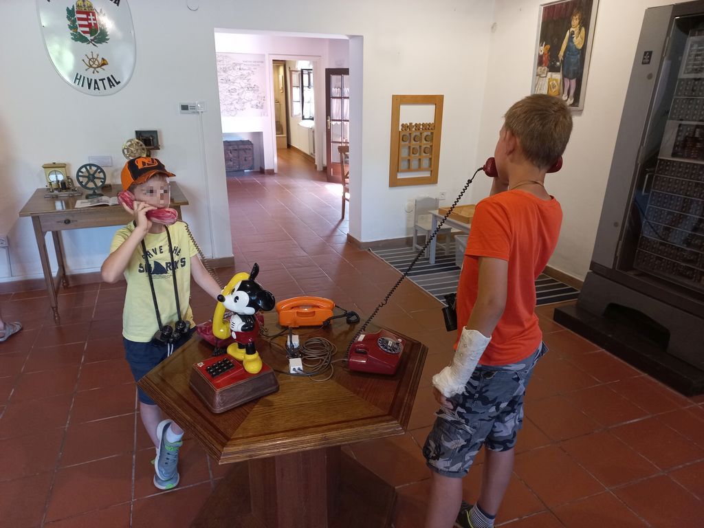 A várból kilépve a hátsó kapun mentünk be és rögtön ámulatba estünk. A gyönyörűen felújított postakocsi, mely körül ott állt egy ló és egy lovászlegény utazásra csábított. Hallhattuk a különféle postakürtöket. A bejáratnál kedves hölgy fogadott, jegyet váltottunk (három felnőtt és egy gyerek számára háromezer forint). A mosolygós tárlatvezető elmagyarázta, hogy működőtt a múlt század elején a telefon. Puskás Tivadar egy pesti lakásban ötven előfizetővel indította el vállalkozását. A telefonoskisasszonyokról is mesélt, meg a morze rejtelmeiről. Az ebben a században születettek különösen élvezheti a tárcsás telefonok kezelését. A postakocsik hosszú idő alatt tették meg a távolságot pl. Bécs és Budapest között, és meglehetősen viszontagságos, időnként veszélyes volt az utazás, mégis sokan vállalkoztak rá. Érdemes ide betérni, időutazásban...