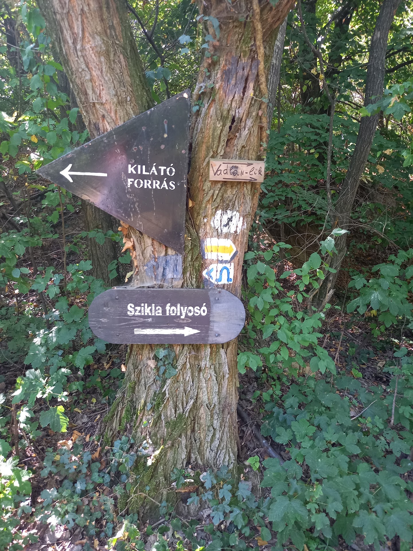 Read moreMa jártunk itt először (2022.10.30)Nagygörbőn a tanösvényen. Nem a legszebb időnk volt ma, sajnos elég nagy volt a köd. A falu felől mentünk be autóval, ameddig lehetett. Egy sorompó lezárta az utat, innen már gyalogoltunk. Minden ki volt rendesen táblázva ill a jeleket mindenhol lehetett látni jól. Az őszi erdő gyönyörű volt ma, de a köd miatt minden nyirkos és csúszós volt. Túracipő jó h volt nálunk. A Vadleány barlang kicsit félelmetes volt számomra. Egy szűk lejáraton kell lemenni, majd egy még szűkebb “lyukon” bebújni. Az elsőn még bemerészkedtem, de tovább nem mertem menni. Lent a sötétben gyertyák égtek, de így is sötét volt nagyon. ( A gyertyákat az előttünk lévők gyújtották meg. ) Szóval egy élmény volt. Az erdő így ősszel gyönyörű volt Aki erre jár , ide jöjjön el túrázni...