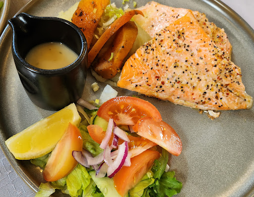 The cod platter, though nicely lit in the display, lacked imagination in both presentation and flavor. It was served without sauce or seasoning and required generous salting to bring out any taste.