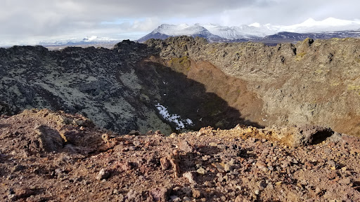 Blessed with unexpectedly and, from what we'd been told, uncharacteristically sunny weather, after several weeks of semi-intermittent rain, which had stopped the night of our arrival, we traveled up the road north of Borgarnes, where we'd slept our first night. After a half-day of excitedly gaping out the car window at the surreal scenery, we noticed the crater on our map and decided to stop by for a closer look.