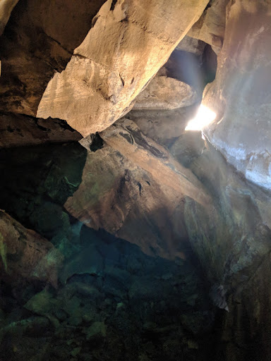 Warning: you should be a decent swimmer. The water is very deep here (30+ ft) so perfect for diving! This was definitely one of the highlights of our trip! We parked next to some horses maybe 1km down from 1 on 848 though it looks like there was parking right before turning off onto 848. I think the parking spot was on the south side of highway 1. Follow signs and head towards the canyons. Be careful of steep drops through bushes if you go off trail. Keep the crevice to your right and you'll eventually come upon a metal staircase leading you down into the caves. There's so many nooks and crannies to explore with a pretty easy and simple trail to follow out and back. Plenty of climbing and scrambling opportunities but the gems were definitely the swimming caves. They're very well secluded. We found two main entryways, one earlier with a rope and another further down with a ladder. This is the place to skinny dip, it's so secluded and the water, though not hot, was tepid/warm. The water was crystal clear. We got lucky with the timing and the sun shone through the hole, straight into the water illuminating rocks around us. It may look dark when you peek in but let your eyes adjust and you'll see just fine! There's lots of places to swim around rocks and through crevices.