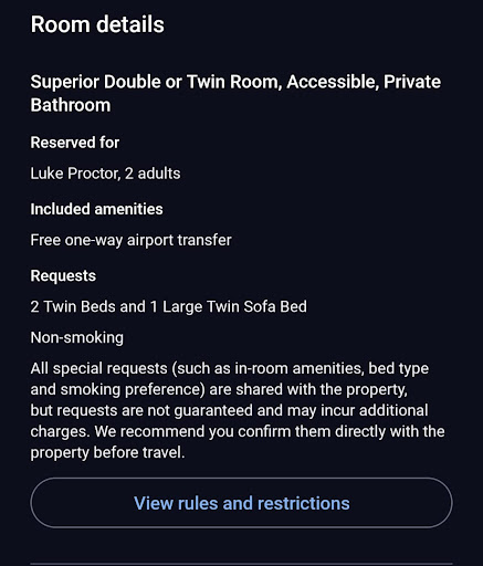 The only pro from the stay is that they permitted an extra guest for the single room at no additional cost. That and it was close to our car...