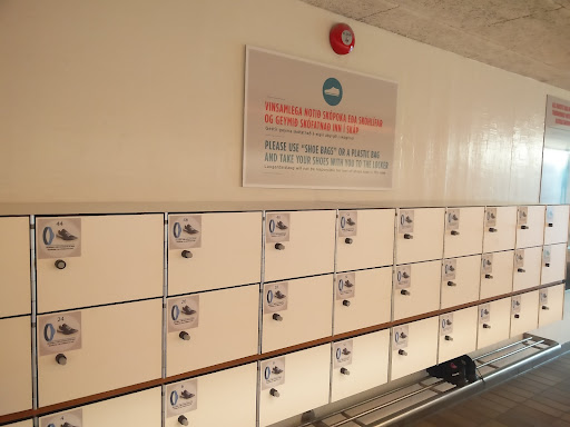 To visitors: there are signs in English and Icelandic warning about not tracking water into the locker area. Place your towel on the rack by the showers before you head to the pool. Although, watch out for thieves. My wife's towels were stolen on Aug 29 and they had to drip dry. The facility staff did not offer a solution for the stolen towels, other than "lost and...