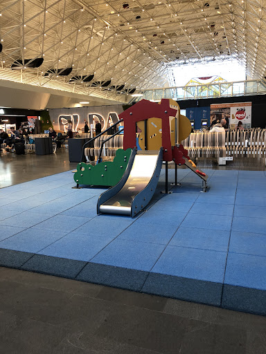 Very clean and bright terminal. Fun children’s play place. Easy kiosk checkin. Be aware that they often bus you out to airplane and there are outside stairs to board. No problem on a sunny day but a bit interesting in the middle of a sleet and wind storm as it was for us! Come prepared with good traction shoes. Terminal itself has several nice shops and good coffee places.