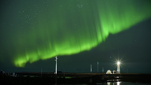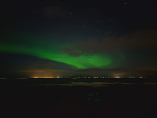 On our first day in Reykjavík, we spontaneously decided to visit the lighthouse. We arrived there around 10pm with a clear sky. You could see the northern lights from the lighthouse all along the beach. It was a very breathtaking moment. A little further away from the parking lot it is even romantic.