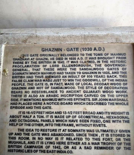 It was a false claim as the Ghazni gate is made of deodar wood & not sandalwood. Also it has Arabic inscriptions with Islamic motifs It was soon discovered that this belonged to the tomb of Mahmud of Ghazni who...