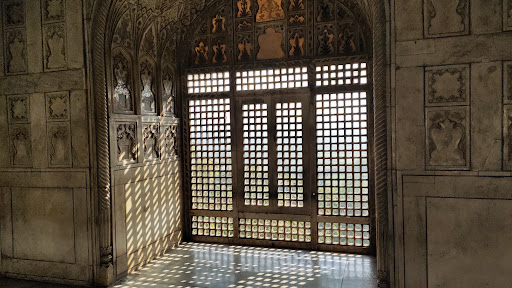 The Shish Mahal is renowned for its stunning use of glass and mirror work. The palace's walls and ceilings are adorned with elaborate inlaid glass patterns, which once created a dazzling effect as light reflected off the surfaces, giving the impression of a shimmering, starry sky. The glasswork was complemented by delicate marble carvings and decorative elements, enhancing the palace's ethereal beauty.