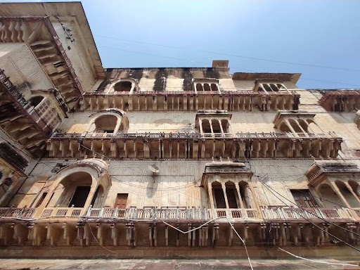It features a fusion of Mughal, Rajput, and European influences, evident in its ornate balconies and spacious courtyards.