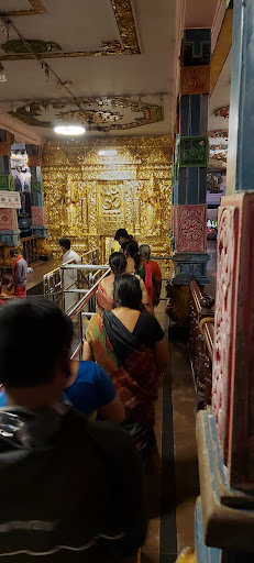 Once we entered the inner sanctum, we noticed that amma sanctum sanctorum was below ground level, (or may be the ground level must have been raised due to road etc) and it was mind blowing to see the sanctum sanctorum plastered with gold sheets all the way to the top.
