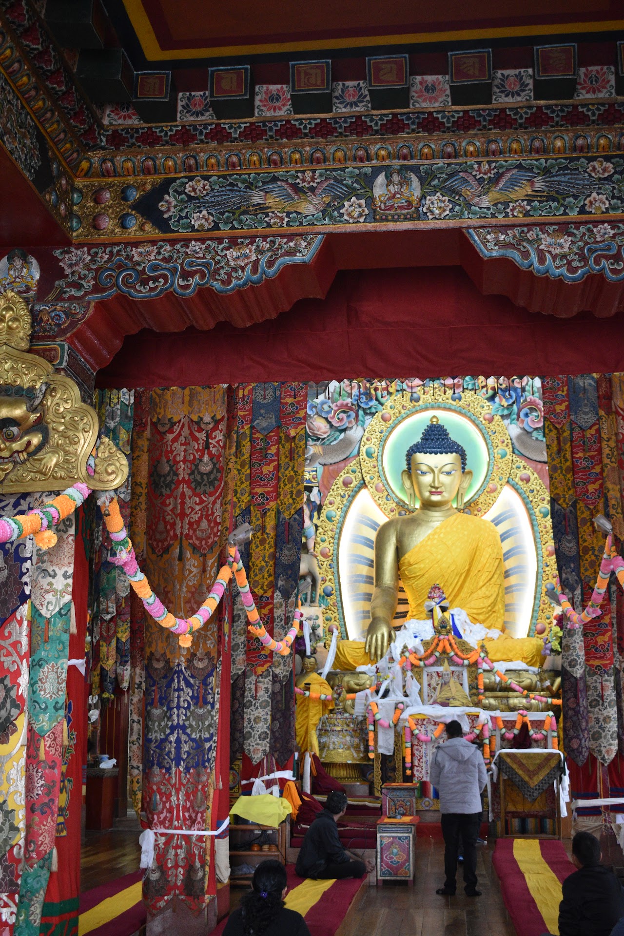 The monastery is three stories high. It is enclosed by a 925 feet (282 m) long compound wall. Within the complex there are 65 residential buildings. The library of the monastery has valuable old scriptures, mainly Kangyur and Tengyur.