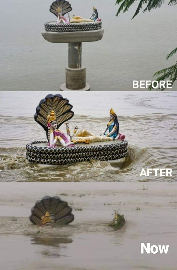 There is a vertical pillar surface that serves to indicate the height reached by the Brahmaputra river during floods. The statue of resting Lord Vishnu and Goddess Lakshmi is sculpted on the scale. One can see the beautiful peacock island from here.