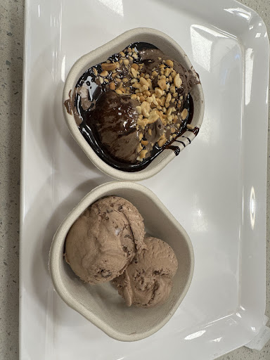 But what truly elevates this dessert is the addition of chopped peanuts, adding a delightful crunch that contrasts beautifully with the softness of the brownie and the creaminess of the ice cream. The combination of warm and cold, soft and crunchy, sweet and slightly savory, makes the DBC a perfect harmony of flavors that leaves you craving more.