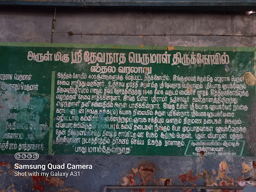 The temple has a rare idol of Hayagreevar. Hayagreevar is genrally found with Lakshmi but in this temple Yoga hayagreevar is found in a meditating pose. That is the speciality of the temple. Students from different places come here to get blessings before going to their exams. Students give their offerings and then place their pen, hall ticket etc in the foot of the Yoga hayagreevar idol and worship the God of knowledge. Sri Hayagreevar is believed as the Lord of Education and knowledge and so the temple always has a crowd of students praying for their exams. The temple is devanathaswamy temple but truly the temple is most visited for Hayagreevar. The northern side of the temple has the famous and holy Azhijal tree. Devotees have the habit of praying for their education, marriage, children by tying up a cloth or thread in the tree. The temple gets its funds from the 55 acres of agricultural land and the ancestral house of Thiru Renagaswamy ayengar,...