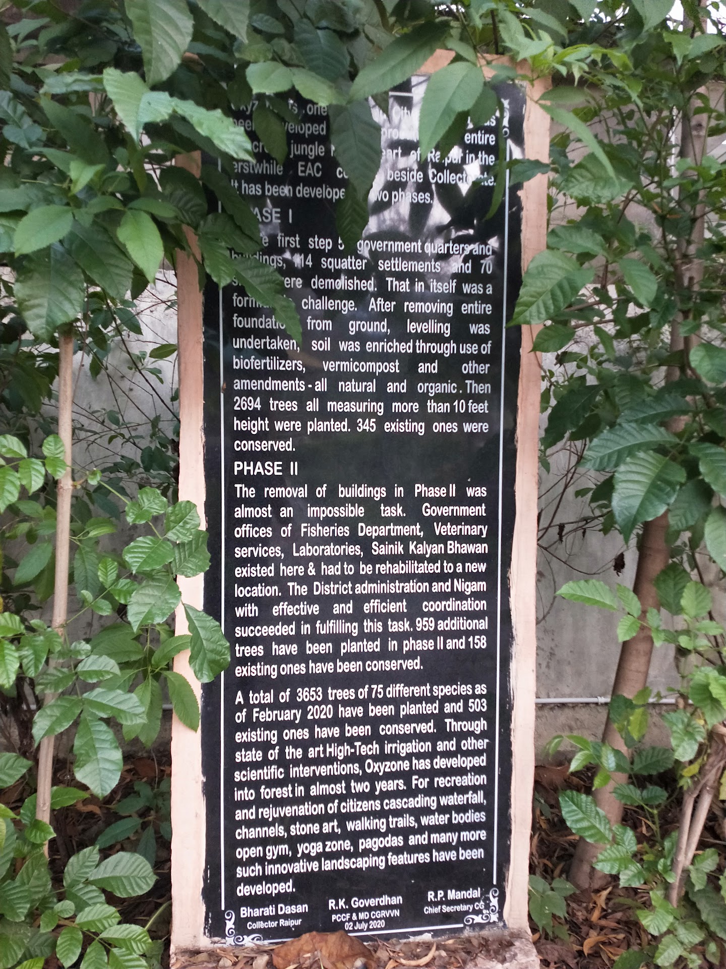 Read moreHere in Raipur city Oxyzone developed over 12 acres of land near Collectorate premise, more than four thousand saplings of 75 various species have been planted at the cost of Rs 4 crore till date. This Oxyzone will not only improve the environment of the city but will also serve as a great place for morning and evening walks and amusement for the citizens. Oxyzone has rides for children, open air gym equipments and a hub for various species of birds and butterflies. Lawns have been developed in the Oxyzone and it also has a small rose graden. For walks, Oxyzone has 3 km. long pathways. Besides it has two water bodies, one of which is natural and other one has been built. Rainwater gets channeled and collected here for irrigating the plants. A waterfall has also been developed here, which looks mesmerizing with lights in the nighttime. It is a beautiful selfie zone for youngsters.