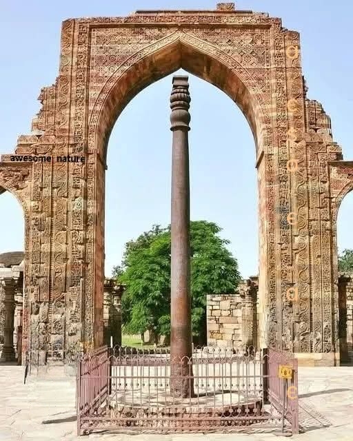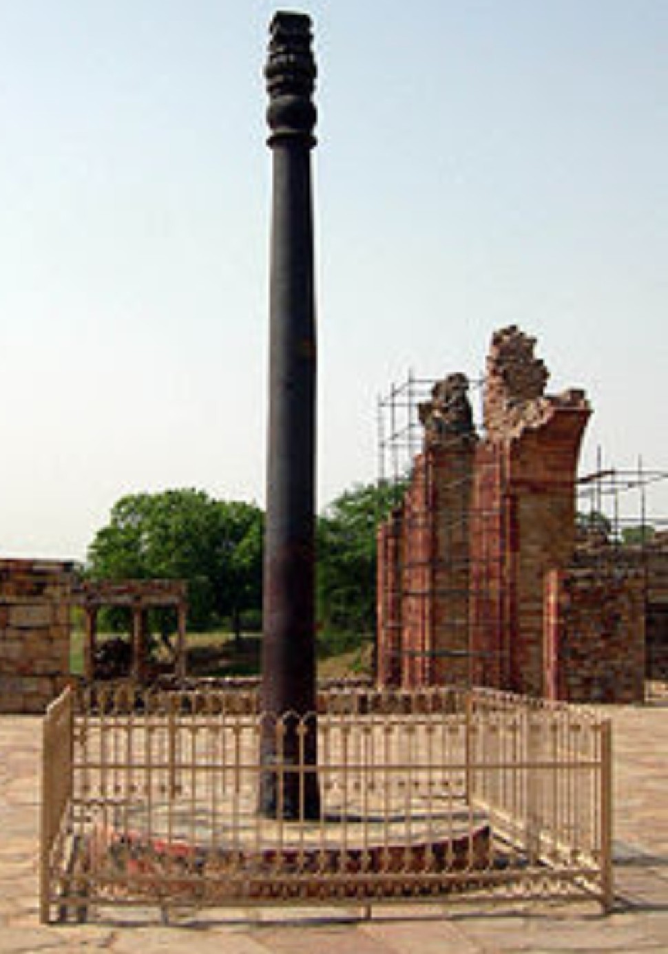 Iron Pillar of Delhi, at the Quṭb Mīnār complex, Mehrauli, Delhi.