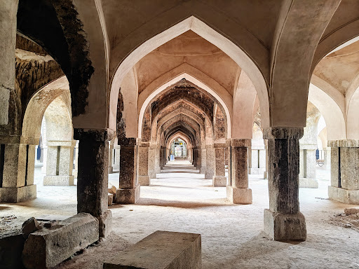 What makes it unique is the fusion of a mosque and a fortress — high stone walls with minimal ornamentation, typical of Tughlaq architecture.