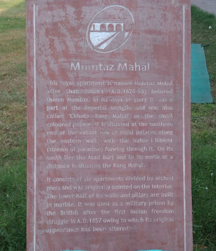 ┬а┬а┬аRead moreMumtaz meaning "the Exalted One of the palace"; Arjumand Banu was Empress consort of the Mughal Empire as the chief consort of the Mughal emperor Shah Jahan. The UNESCO World Heritage Site Taj Mahal in Agra, often cited as one of the Wonders of the World, was commissioned to act as her final resting place. The Mumtaz Mahal is one of the six main palaces that were situated facing the Yamuna River. All six palaces were connected by the Stream of Paradise (Nahr-i-Bishisht), a waterway which ran through them. At one time the Chhoti Baithak, which no longer exists, was located just to the north of the Mumtaz Mahal. The building was constructed with white marble in the lower half of its walls and pillars. It consists of six apartments divided by arched piers and was originally painted with floral decorations on the interior. The Mumtaz Mahal was part of the Zenana. After the British occupied the fort, it was used as a prison camp. The building currently houses an exhibition of the Red Fort Archaeological Museum, consisting largely of exhibits of the Mughal period. Mumtaz Mahal was Empress consort of the Mughal Empire from 19 January 1628 to 17 June 1631 as the chief consort of the Mughal emperor Shah Jahan. The UNESCO World Heritage Site Taj Mahal in Agra, often cited as one of the Wonders of the World, was commissioned to act as her final resting place. Historic place located inside the LAL quila of Delhi. Situated on the back side of the the lal quila on the side of ring road. It is a very nice and mesmerizing historic place. Nice place to hang out. And spend some quality time with the history of India. Public transport easily available, can be reached by metro or bus. Nearest metro station...