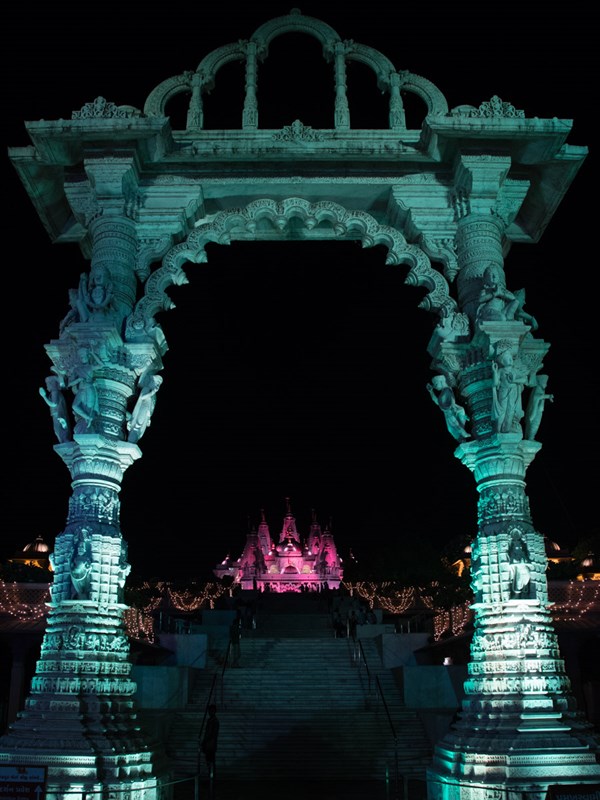 Many of them are recorded in Vachanamrut scripture. There is also a big huge neem three nearby. On the backside of temple are Gangajalio well along with Akshar Ordi, which holds heritage values as well. The huge open area in front of temple and garden area on the first storey is eye soothing especially during sunrise and sunsets. This temple is masterpiece of carvings and structures. This auspicious place becomes more divine when followers keep chanting mantras and dhun during wee or evening hours.