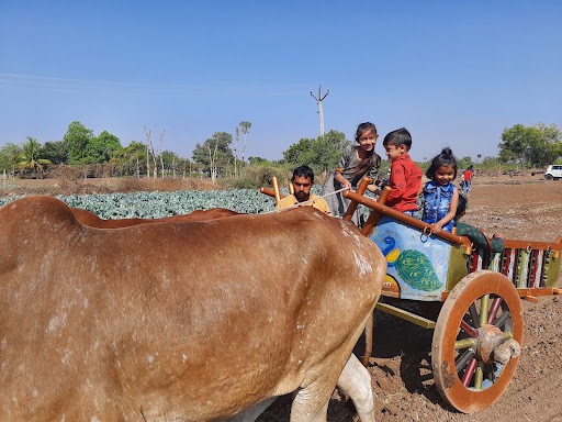 Arguably first Agro tourism in Gujarat. Perfect picnic spot for friends group and family. 2 slots available: Morning 9 to Evening 6, Afternoon 1 to Evening 6. 299 Rupees (Full Ticket), 199 Rupees (Half Ticket) (Food, tea and snacks included) Food is delicious and served hot. They grow vegetables organically at the same place so I guess they use it for the cooking also. Rain dance happens in the noon after lunch. Then tea is being served around 3. Then guided tour of their organic farm and chandan vadi. In the evening play traditional games Marble ball (લખોટી), Spinning toy (ભમરડો) , Rassi khinch (રસ્સાખેંચ) ,કોથળા દોડ ,મટકી દોડ ,Archery (તીરંદાજી) , Three legs run (ત્રિપગી દોડ), નારગેલ ,Disk throw , Bedminton (ફુલરેકેટ), Volleyball etc. Activities: Adventure zone, experience Rural huts and equipments like wheat grinding - makhan strring, Bull kart, Jhulta Pool, Tyre wall, swings on bargad (વડ)...