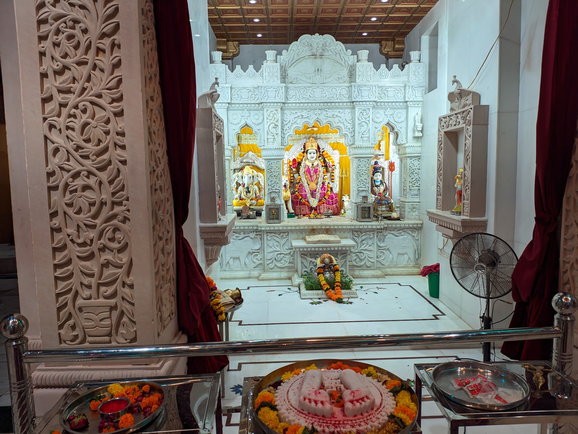 As per description in devibhagwat, Goddess Bhuvaneshwari is sitting on Bhuvaneshwar Mahadev, hence Shri Bhuvaneshwar Mahadev is laid in this underground chamber beneath the temple.