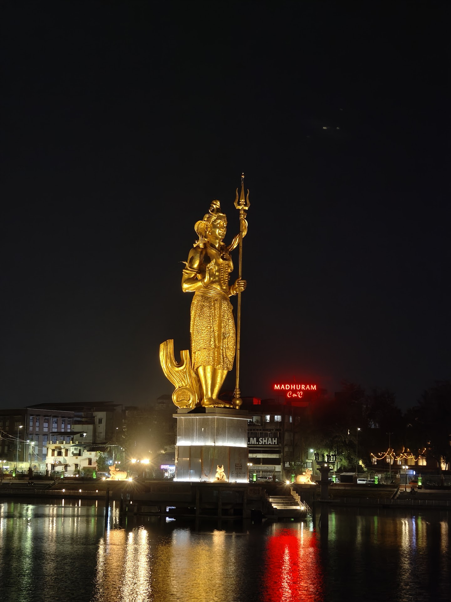 The Shiv idol at Sursagar Lake in Vadodara is one of the prominent landmarks and a significant religious and cultural symbol in the city. Situated in the heart of Vadodara, the idol stands tall and serves as a tribute to Lord Shiva, one of the principal deities in Hinduism. This colossal statue is an integral part of the city's identity and holds spiritual, historical, and aesthetic importance.