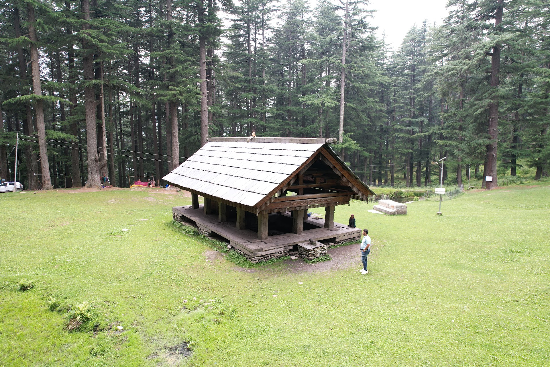 It’s surrounded by cedar trees, and the ground is a lush green mat of Himalayan grass.