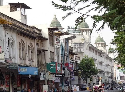Madina building is the oldest commercial suburbs of Hyderabad, India. It is very close to the historic Charminar.[4] This is a major traditional retail street in Hyderabad. Madina building is connected with the neighboring commercial areas like Pathargatti, Shehran, Charminar and Laad Bazar which houses shops specially for women and Brides, and daily around millions of business deals are done in this regions.[5] Most of the bridal dress are Exported to neighboring states, United States, Europe, Middle East, Pakistan, Bangladesh and many other countries. During the Holy Month of Ramzan you could hardly find the space to stand otherwise the area is completely crowded and locked with the Retail shoppers during Day and Night.[6]