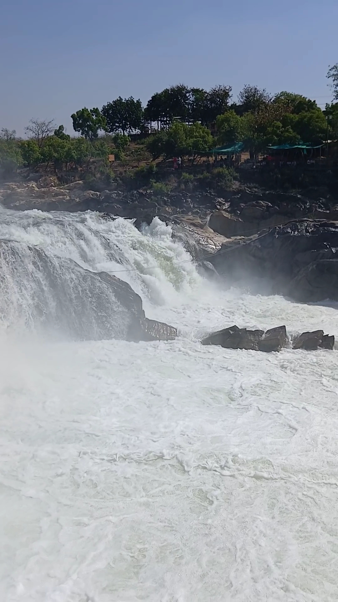 As you approach the falls, the sound of rushing water grows louder, and the sight of the torrent plunging into the pool below is mesmerizing. The surrounding landscape is lush green, with marble rocks lining the riverbed, adding to the scenic beauty. You can take a boat ride to get up close to the falls, feeling the mist on your face and experiencing the raw power of nature.