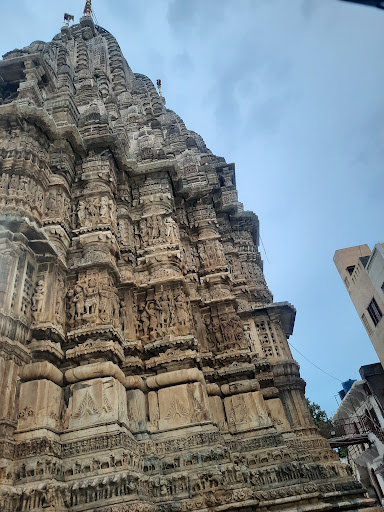 The temple's architecture is an exquisite blend of various styles, including Hindu, Mughal, and Jain influences, which is evident in its intricate carvings, elaborate pillars, and beautifully sculpted figures. The craftsmanship is particularly notable on the temple’s exterior walls and interiors, which are adorned with detailed depictions of mythological stories and characters.