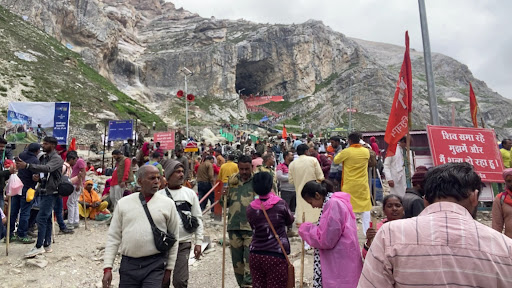 Amarnath Temple is a Hindu shrine located in the Pahalgam tehsil of the Anantnag district of Jammu and Kashmir, India. It is a cave situated at an altitude of 3,888 m (12,756 ft),1] about 168 km from Anantnag city, the district headquarters, 141 km (88 mi) from Srinagar, the summer capital of Jammu and Kashmir, reached through either Sonamarg or Pahalgam. It is an important shrine in Hinduism.The cave, located in Sind Valley, is surrounded by glaciers, snowy mountains and is covered with snow most of the year, except for a short period in the summer, when it is open to pilgrims. In 1989, pilgrims numbered between 12,000 and 30,000. In 2011, the numbers reached a peak, crossing 6.3 lakh (630,000) pilgrims. In 2018 pilgrims numbered 2.85 lakh (285,000). The annual pilgrimage varies between 20 and 60 days.The Amarnath cave, abode of the Mahamaya Shakti Pitha, is one of the 51 Shakti Pithas, the temples of the Indian subcontinent that commemorate the location of the fallen body parts of the Hindu deity Sati.The book Rajatarangini (Book VII v. 183) refers to Krishaanth or Amarnath. It is believed that in the 11th century CE, Queen Suryamati gifted trishulas, banalingas and other sacred emblems to this temple.[14] Rajavalipataka, begun by Prajna Bhatta, contains detailed references to the pilgrimage to Amarnath Cave Temple. In addition, there are further references to this pilgrimage in many other ancient texts.Pilgrims visit the holy site during the 45-day season around the festival of Shravani Mela in July–August, coinciding with the Hindu holy month of Shraavana.[38] The Amarnath Yatra pilgrimage occurs when the iced stalagmite Shiva lingam reaches the apex of its waxing phase through the summer months.[39] The period of July–August is a popular time for the pilgrimage.[40[42] The beginning of the annual pilgrimage is marked by pratham pujan (transl. first prayer).The route is motorable up to Chandanwari, which will become motorable up to Sangam after construction of NH501 Chandanwari-Baltal Highway which includes Khanabal-Baltal Tunnel (Sheshnag Tunnel) under the Mahaganus Top (Ganesh Top), see "Transport" section above.[51] Once completed, all the route will become motorable except the last 3 km from Sangam to Amarnath cave.The time frame, during which the pilgrimage remains open, depends on the formation of iced lingam. For example, in 1995 the pilgrimage remained open for 20 days. From 2004 to 2009, it remained open for 60 days. During the following years, it remained open for between 40 and 60 days.[45] In 2019, the Yatra remained open for 46 days from 1 July to 15 August.Devotees travel on two main routes which are partially motorable and partially foot-track near to the holy cave: the shorter but steeper 13 km northern route from Baltal Basecamp, and the longer but easier and busier 43 km Pahalgam-Chandanwari basecamp route.It runs from Baltal basecamp to Domail – 2 km, Barari – 5 km, Sangam (T-section for South route via Pahalgam-Chandanwari) – 4 km, Amarnath cave - 3 km. This track is motorable till Baltal and Baltal-Amarnath foot track takes one to two days return trip. Once the NH501 from Pahalgam-Chandanwari to Baltal is completed, including Sheshnag-Sangam tunnel under the Mahaguns Top (Ganesh Top), this route will become motorable except the last 3 km from Sangam to Amarnath cave. This shorter route is just about 14 km long, but has a very steep gradient and is quite difficult to climb. The route is along the Amarnath valley and all along the route one can see the Amaravati river (a tributary of Chenab) which originates from the Amarnath Glacier.Amarnath Mahatmya identifies a number of locations on the pilgrimage route to the Amarnath cave: Shurahyar, Shivpora, Pandrethan, Pampore, Javati, Awantipur, Barsu, Jaubror, Belihar, Wagahama, Chakreshwar (Tsakdar), Hari Chandar, Sthalwat (Thajwor), Suryai Gohwat (Sriguphvara), Lambodari, Sirham, Bodrus, Bala Khelyan, Ganish, Mammaleshwar, Bhrigupati Kshetra, Nila Ganga, Pissu Hill (Pissu Top), Sheshnag, Wavjan,...