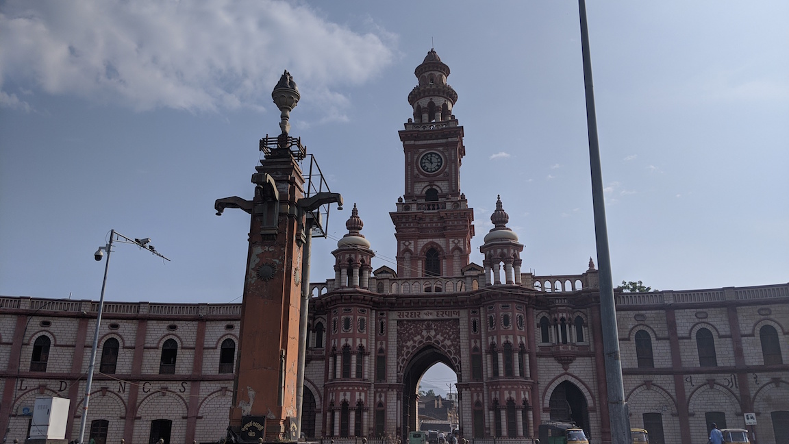 The clock tower looks like it's sprouted out from the roof of the entrance. Like the rest of the sure, the clock is also designed in an Indo-Islamic style and painted on a riot of pink and beige.