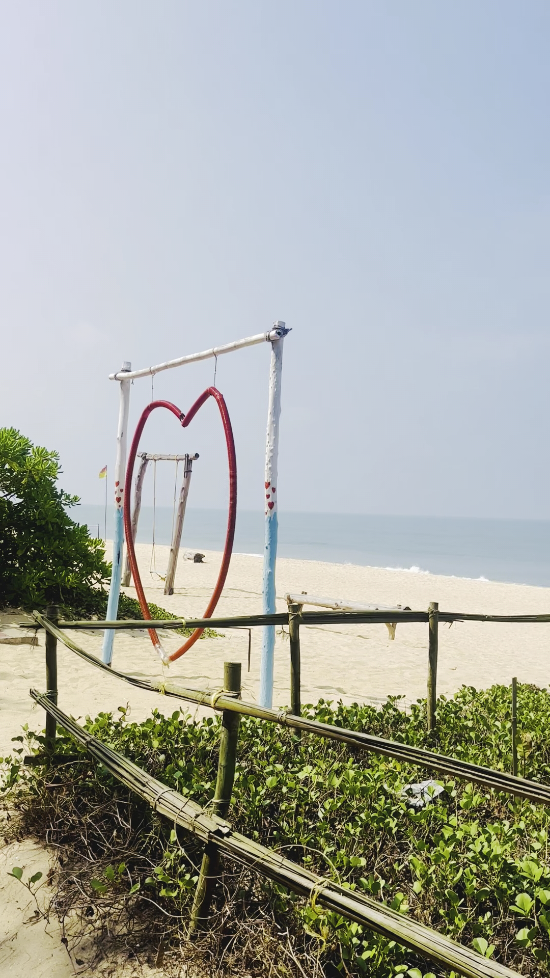 The beach sand has clean white sand and the rhythm of the Arabian sea feels beautiful. Within the beach premise are a few huts with some wooden logs / benches and some swings to relax while watching the ocean. There is a cafe operational which serves some snacks and beverages at reasonable prices. Children area is available and some basic fitness activities can be done.