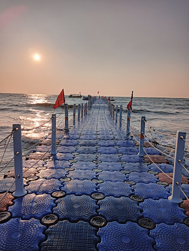 Floating bridge in Malpe is Karnataka's first floating Bridge & 2nd in india after beypore beach in Calicut. Inaugurated 2years ago in late May 2022 but was broken due poor quality and low.Later on, in summer 2023 it was handed over to private through auction bidding funding on contract basis. Initially the govt was charging Rs.100 per person for 15 minutes.But when it started as PPP they started charging ā¹150 for 15mins which is expensive. The floating bridge is open through the day.But what I can say is evening gives us a thrilling experience of sunsetting,energetic waves,lights under floating bridge all gives a picturesque view.But it's crowded at that time.If you prefer less crowd then daytime would be perfect & may extend till 20mins if no visitors are awaiting. Lifeguards will be guiding and assisting you till a big wave comes which is the best part of this bridge will guide you how to balance through waves.Initially one can get scared but once learning through balance facing waves it would be super thrilling. All thanks to guide who was super interesting & communicative in explaining all of these.