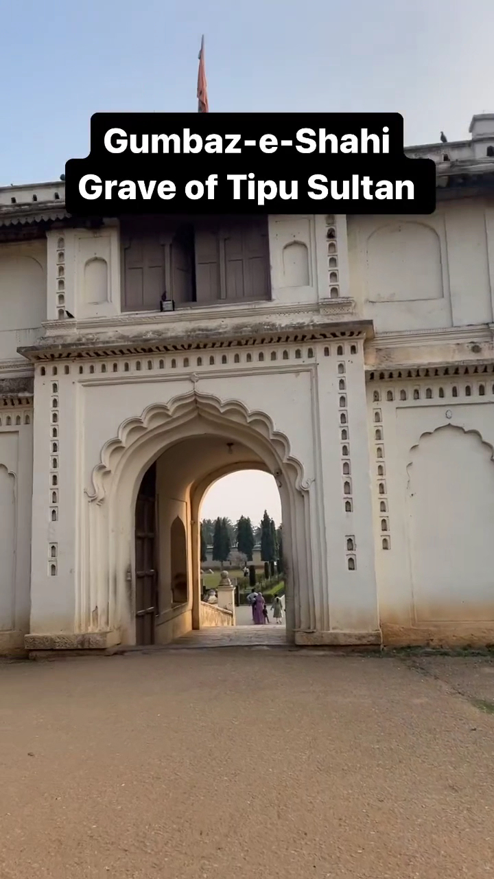 The Gumbaz was raised by Tipu Sultan in 1782-84 at Srirangapattana to serve as a mausoleum for his father and mother. The mausoleum was surrounded by a cypress garden which is said to have different species of flowering trees and plants collected by Tippu Sultan from Persia, Ottoman Turkey, Kabul and French Mauritius. The original carved doors of the mausoleum have been removed and are now displayed at the Victoria and Albert Museum, London. The present doors made of ebony and decorated with ivory were gifted by Lord Dalhousie.