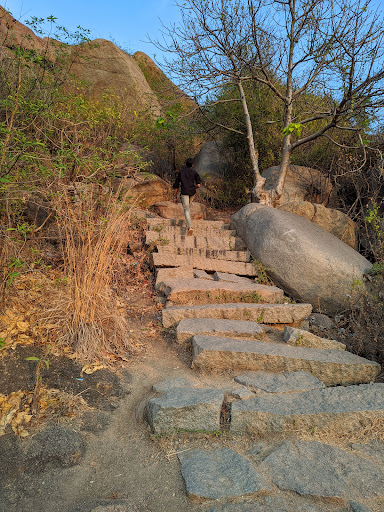 Please carry a water bottle to save time and maintain your pace. There's a stretch after 15 mins of climb, where people start having second thoughts about continuing the climb. There are 7-8 poorly carved steps on a rock with nothing to cling on to for support. Once you cross that, rest of the climb is fairly easy.