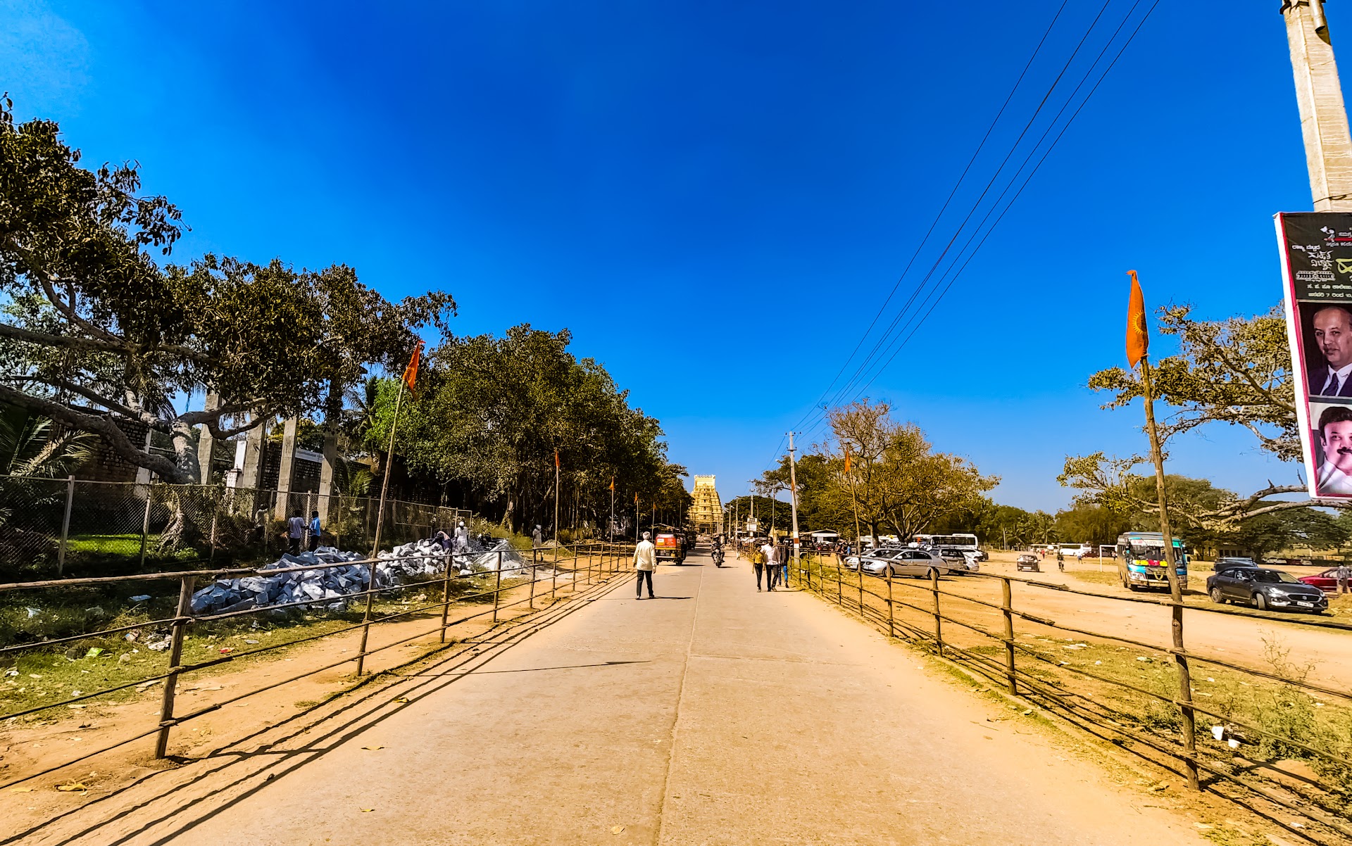 As you step through the towering gopuram, adorned with vibrant sculptures and mythical figures, you enter a world of intricate carvings and expansive corridors. The majestic pillars, each a masterpiece of craftsmanship, tell stories from Hindu mythology and stand as silent guardians of the temple's sacred space.
