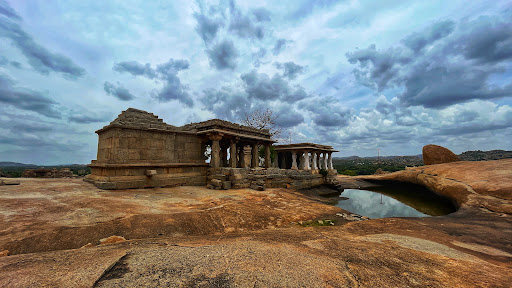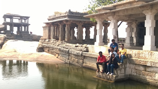You'll easily spot this humble looking white washed shrine on this undulating sheet of rocky plateau otherwise scattered with some of the impressive looking temples in Hampi. There is a natural water spring (pond) right in front of this shrine.