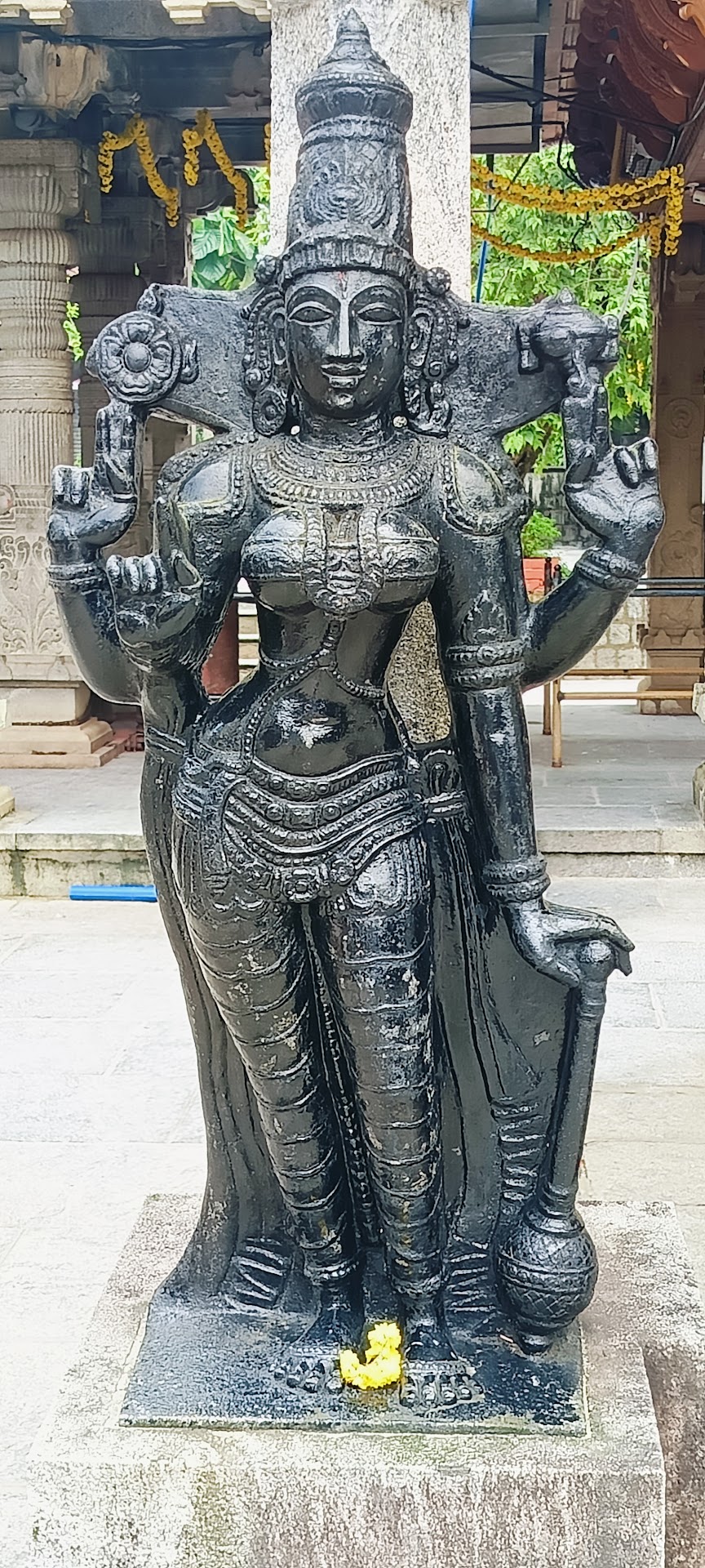 The architecture of the temple follows the coastal temple style. With the Janardhana pushkarni (temple pond) situated on the right, the entrance of the temple is wide and appears prominent. Immediately after entering, one is taken in by the hugeness of the compound. The Janardhana Temple which lies directly ahead is a very massive and imposing one. The Mahakali Temple is located to its left. With the practice being that one first has the darshan of the goddess, we headed over to the left.
