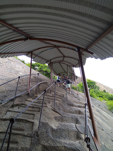 Read moreNot for you if you are scared of height and steep places. A good drive from Bangalore will take you there with country side on the way. Once near you will be able to see the serpentine looking structure on top of the hill. That is to cover the pathway which leads to the top of the temple. You will get the parking at the base for which you might have to pay. Once the walk starts and you are at rhe base of SRS hills, the covered structure starts. It's not a lot of hike but in ate least 3 places, it very steep and little scary as well. Wear shoes with good grip and hold on to the railing all the time. Getting down is also challenging. Once up, it's a beautiful view of other hills nearby, as well as the richard and a lake below(That's most probably is q mango forest). You can go to a small temple once at top for which you will have to climb down a little on other side of the hill but it's scary. Make sure to just lie down and enjoy the breeze at the top. At the base there was a local vendor selling bhelpuri, raw mango. Be careful with the food as there were many monkeys around. A good place for adventure seekers. Look up and...