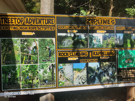 Adventure Activities (Rs.1999 for All activities) A mountain climb type of walk(just a pun) is required before performing the following activities. There are five activities clubbed together as treetop adventures namely wobbling bridge, pole walk, twin cable, tyre bridge, giant hammock. All the activities are an experience of their own.