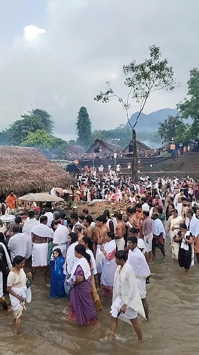 Read moreThe Kottiyoor Temple, A beautiful temple where nature, man, and God come together is located in Kannur district of Kerala, India, is ancient and highly revered Shiva temple with deep connections to mythology, history, and Kerala's traditional rituals. It is known primarily for the Kottiyoor Vysakha Mahotsavam, a unique and elaborate annual pilgrimage and ritual festival. Kottiyoor is traditionally associated with the Daksha Yaga. Sati attended the Yaga uninvited and self-immolated in protest of her father's insult. In rage, Shiva destroyed the Yaga and decapitated Daksha. This place is believed to be the site where Daksha Yaga occurred.The deity is the Swayambhoo surrounded by Thiruvanchira. During the Daksha sacrifice, Shiva’s beard was torn off, scattering over the spot. Odapoo honors that symbolism. Odapoo is crafted from reed or bamboo fibers—natural, lightweight, and traditionally white in color. Traditionally it is taken home by devotees as a token of blessings, believed to bring prosperity and protection. They’re often hung in prayer rooms or households for over a year.